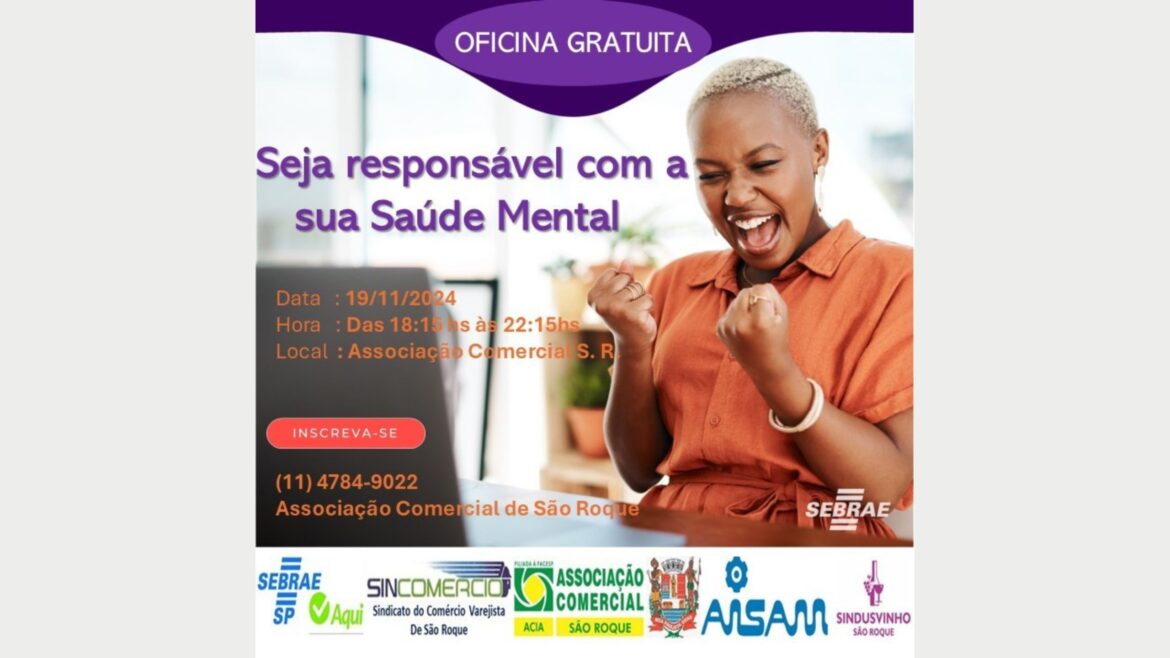 A saúde mental vai além de tratar doenças ou crises; é sobre adotar práticas diárias que promovam o bem-estar psicológico e emocional. Pensando nisso, a oficina gratuita “Seja Responsável com a Sua Saúde Mental” será realizada em São Roque (SP), no dia 19 de novembro, , das 18h15 às 22h15. O objetivo é incentivar os participantes a desenvolverem resiliência mental e a praticarem a autocompaixão.