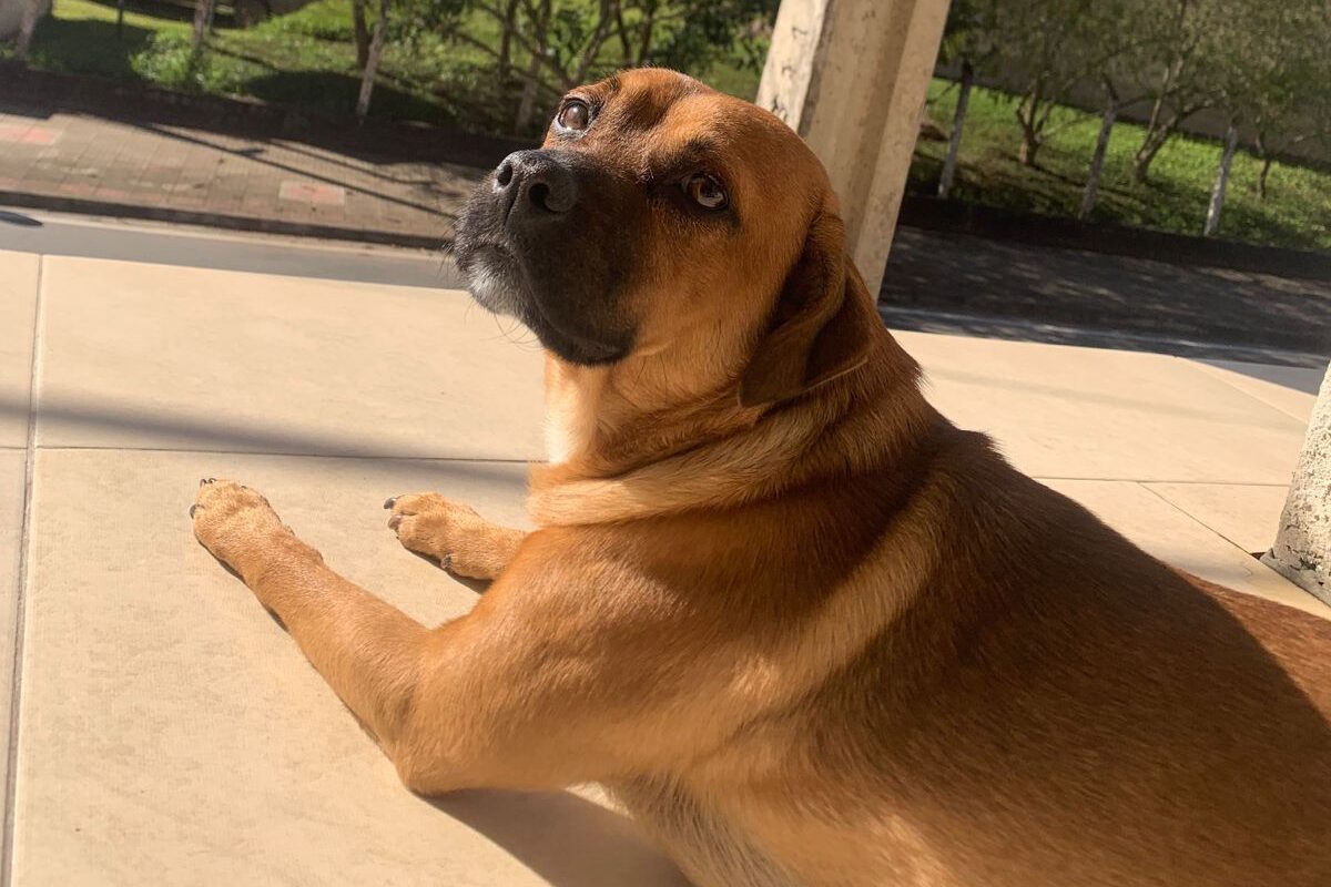 O pet atende pelo nome de Max, é vira-lata, de grande porte, e pode ser identificado por seus pelos cor caramelo com manchas brancas.
