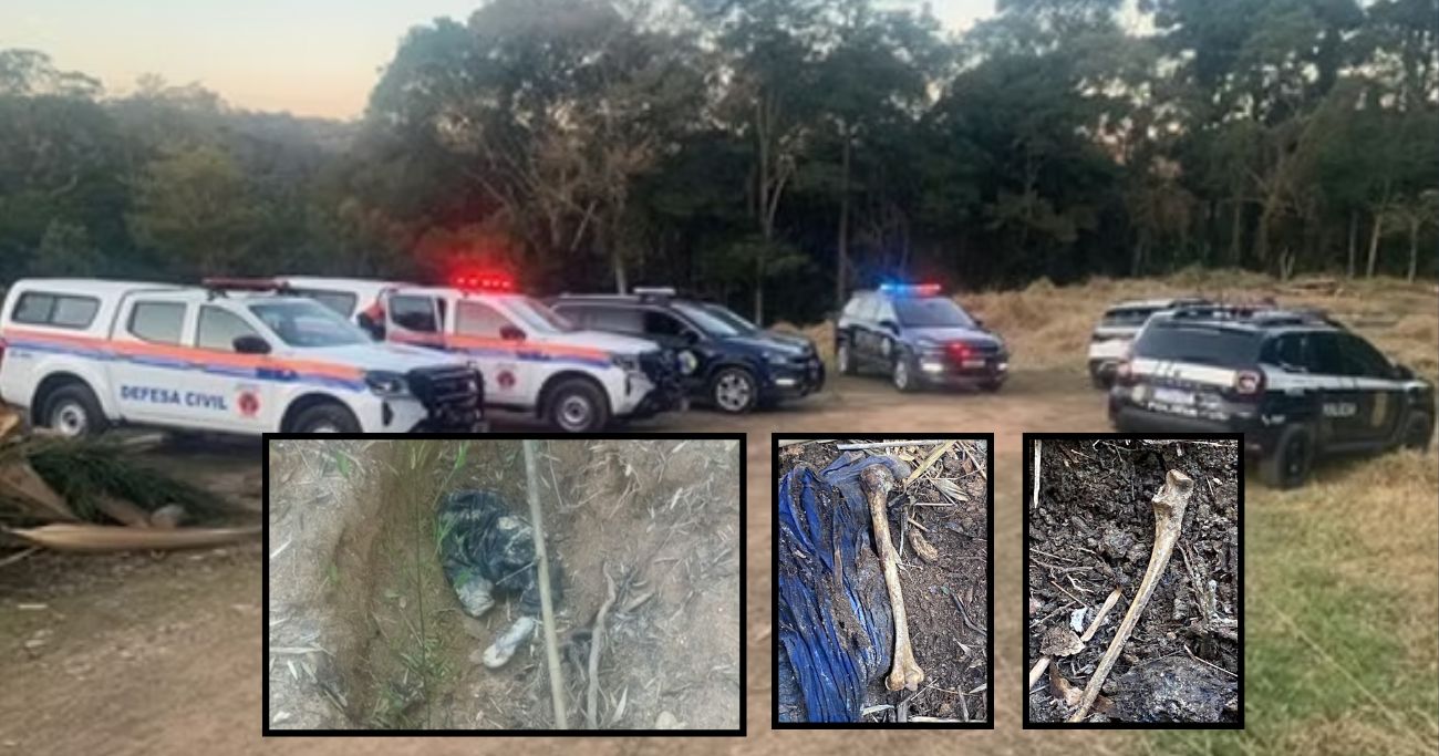 Segundo o relato, duas covas estavam abertas e, na terceira, era possível ver ossos entre roupas, próximo a um bambuzal. Os agentes seguiram até o local indicado e confirmaram a denúncia. Durante a vistoria, encontraram dois ossos, aparentemente humanos. A área foi imediatamente isolada, e o apoio de outras equipes foi solicitado.