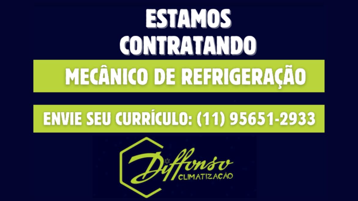 A empresa Diffonso Climatização, em São Roque (SP) está contratando um Mecânico de Refrigeração para atuar de segunda a sexta-feira, das 7h30 às 17h30, sob regime CLT.