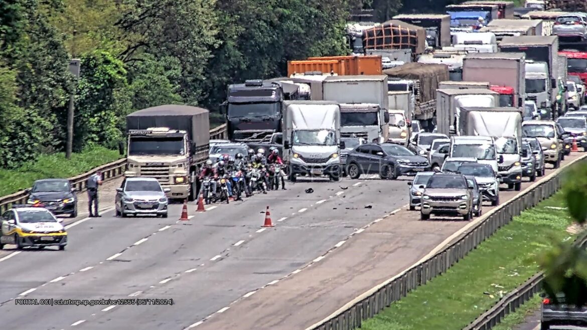 De acordo com o Centro de Controle Operacional da concessionária responsável, o acidente gerou interdição parcial das faixas 1, 2 e 3 até as 11h52, enquanto o acostamento permaneceu bloqueado.