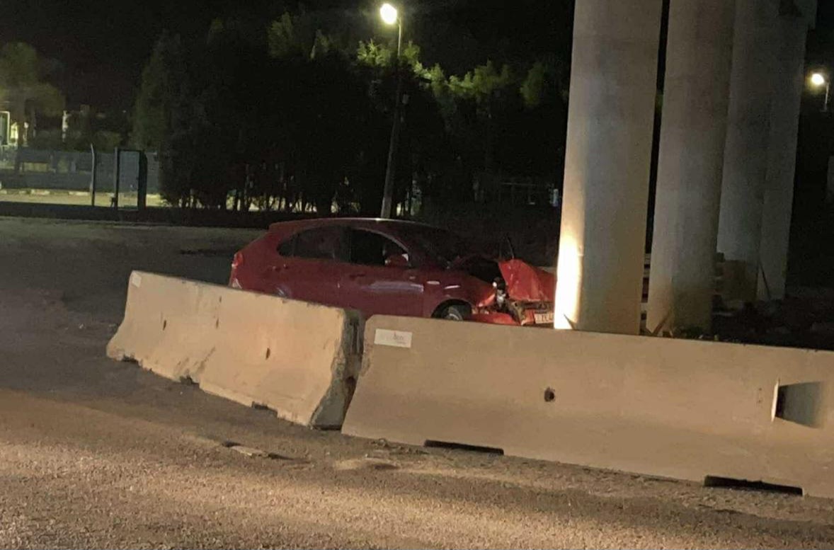 Na noite desta terça-feira, o veículo bateu contra a pilastra de concreto.